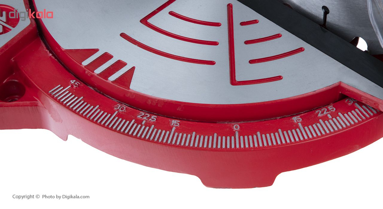 تیغه 210 میلیمتر، ولتاژ 220 ولت، ضخامت تیغه 2-4 میلیمتر، برش چپ و راست 0 تا 45 درجه، برش مستقیم 12×6 سانتیمتر، برش 0×45 درجه 8×6 سانتیمتر، برش 45×45 درجه 12×3.3 سانتیمتر.